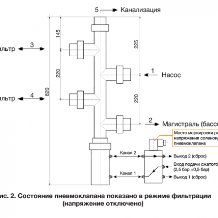 Автоматический клапан (пневмо) пятиточечный для системы водоподготовки бассейна d63 AQUAVIVA, Россия