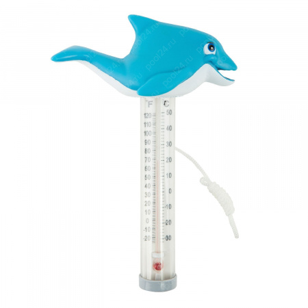 Плавающий термометр Kokido K785BU/6P Дельфин для бассейнов. Изготовлен из безвредного полимера, не содержит стекла, ртути или острых частей. Имеет две шкалы - Цельсия и Фаренгейта. Оснащен плавающим шнурком для крепления к стенке бассейна.