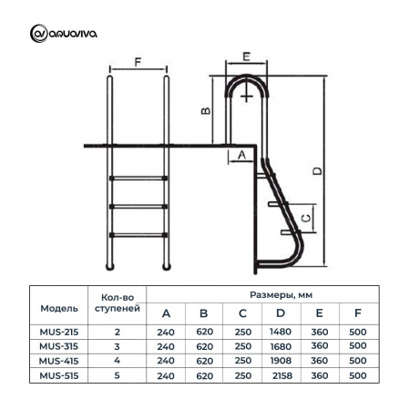 Лестница Aquaviva MUS-315 (3 ступ.) для облегченного спуска