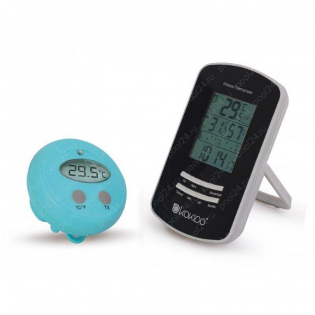 Термометр цифровой Kokido K617CS многофункциональный из 2 устройств. Базовая станция может быть установлена на горизонтальной или вертикальной поверхности внутри помещения. Показания плавающего датчика передаются на базовую станцию, которая отображает температуру, влажность воздуха и другие параметры. Теперь чтобы узнать температуру воды нет надобности приближаться к бассейну. Максимальное расстояние между датчиком и базой 30 метров. Батарейки АА в комплект не входят.