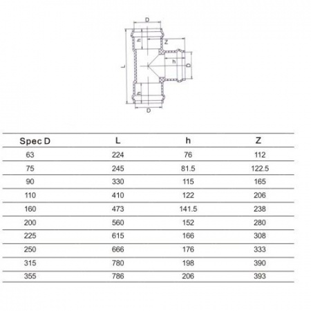 Тройник 90° раструбный 315 мм
